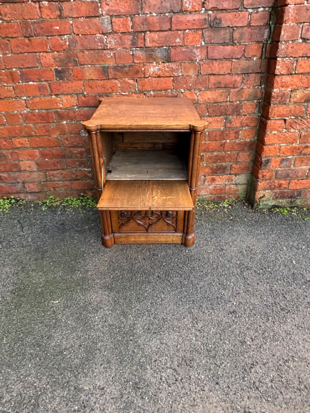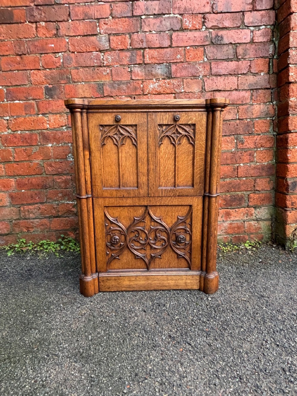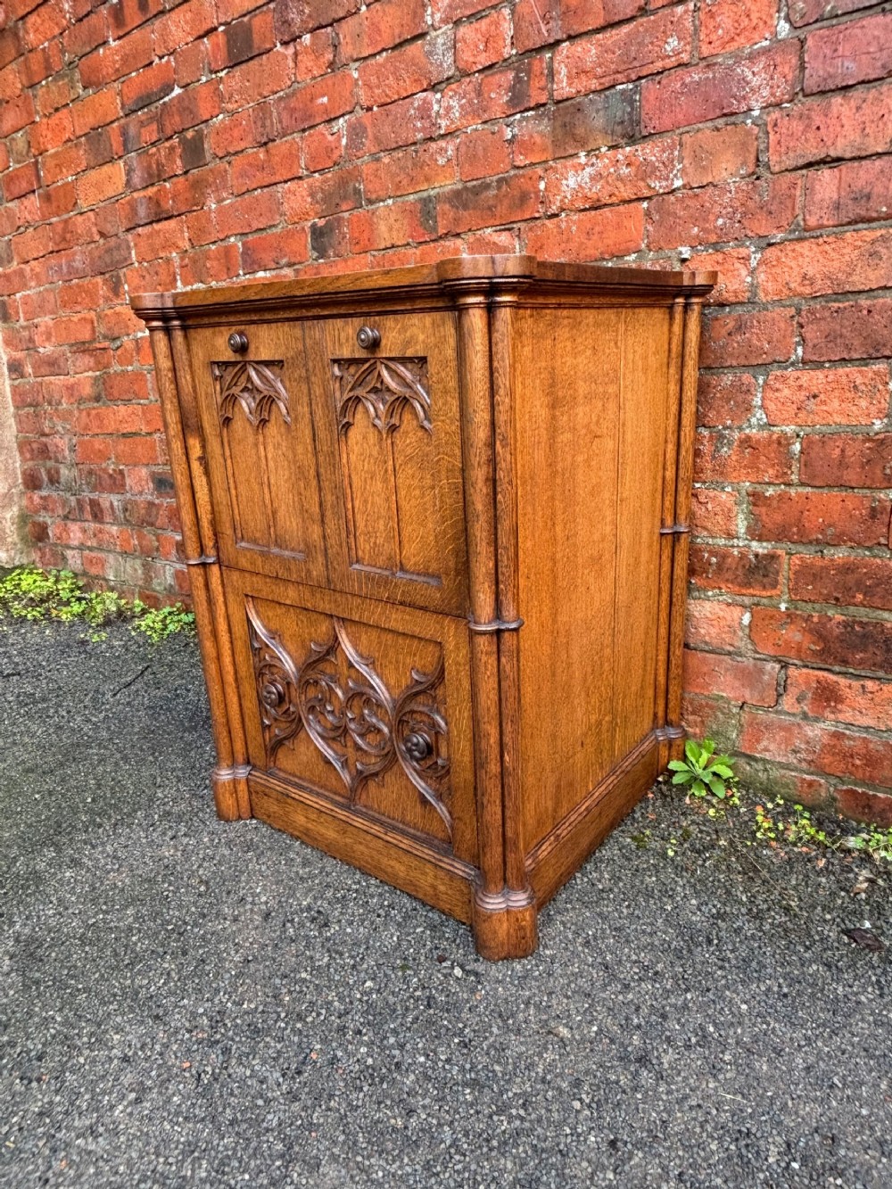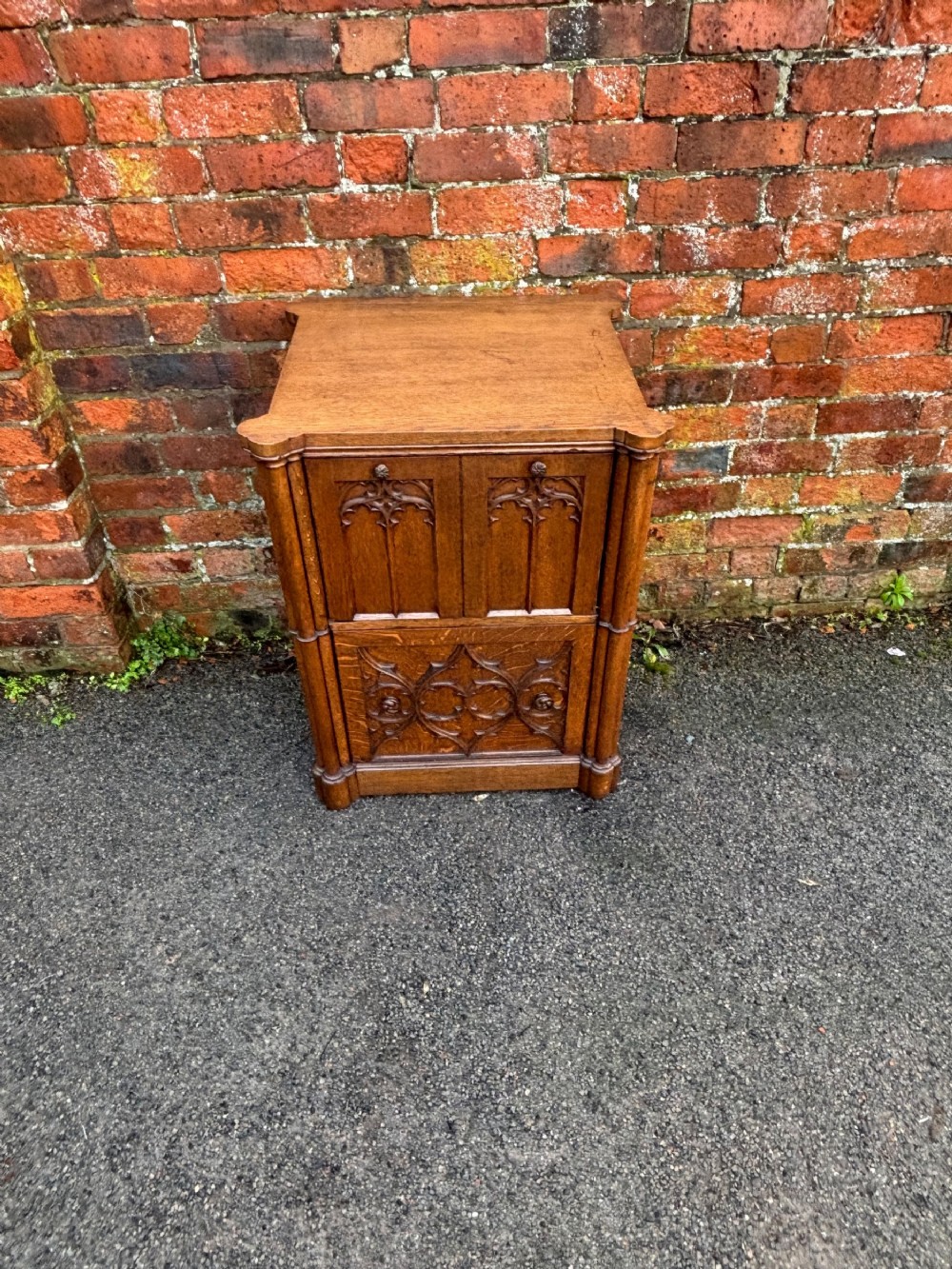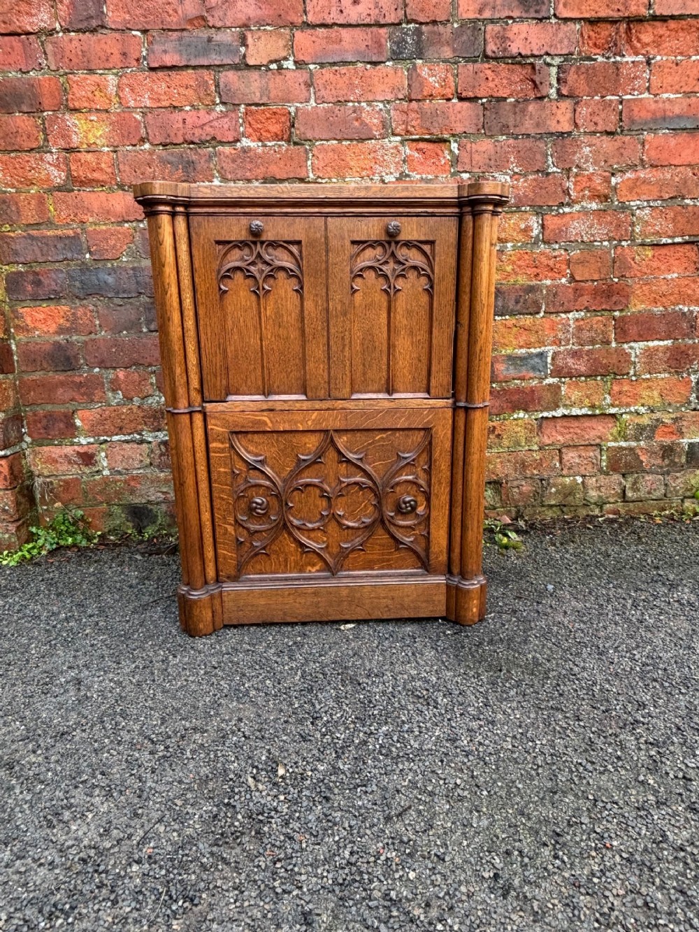 A pair of oversized 19th century gothic revival oak regency bedsides, quite a rare find.