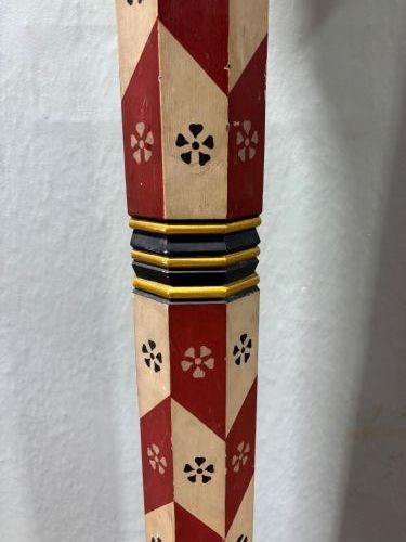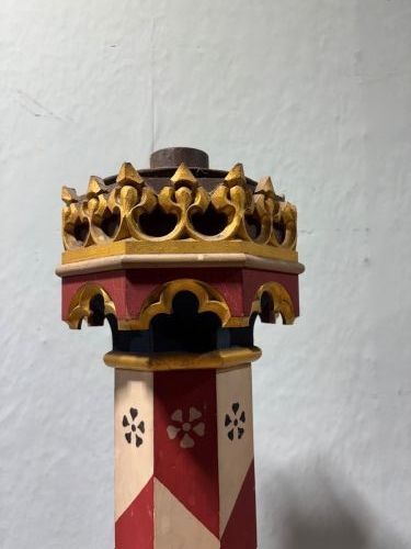 A pair of Gothic revival painted candlesticks