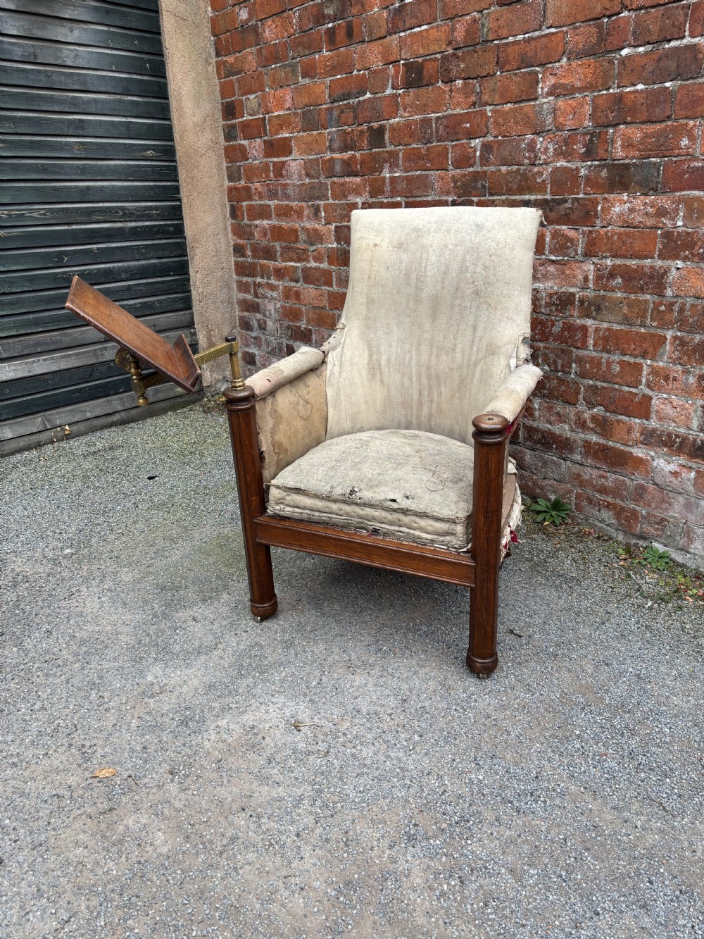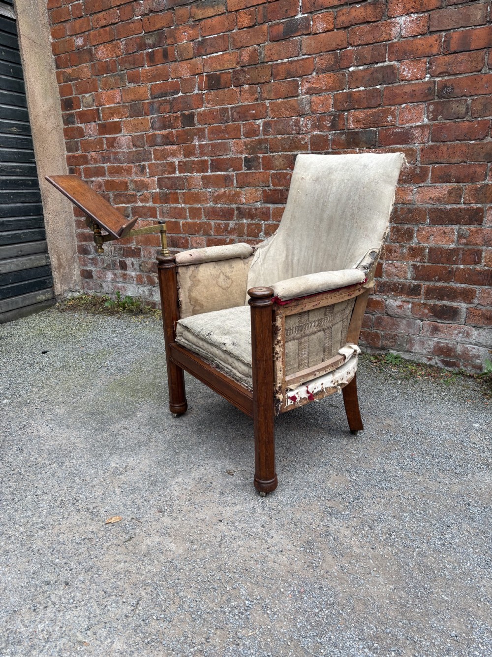 A rare 19th century regency oak library armchair with reading stand, designed by William Porden possibly for Eaton Hall, Cheshire.