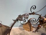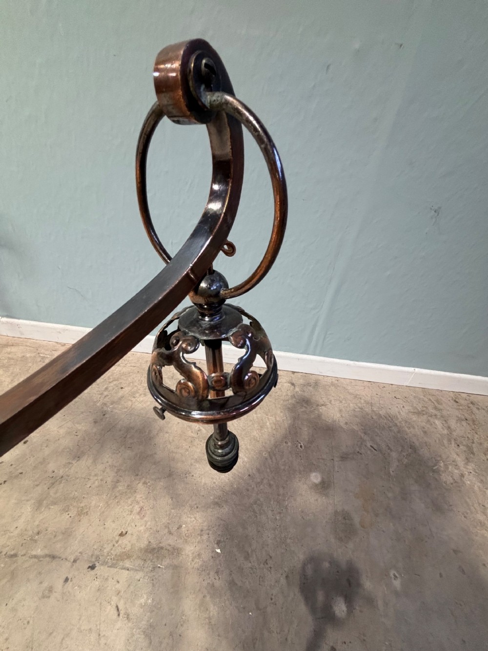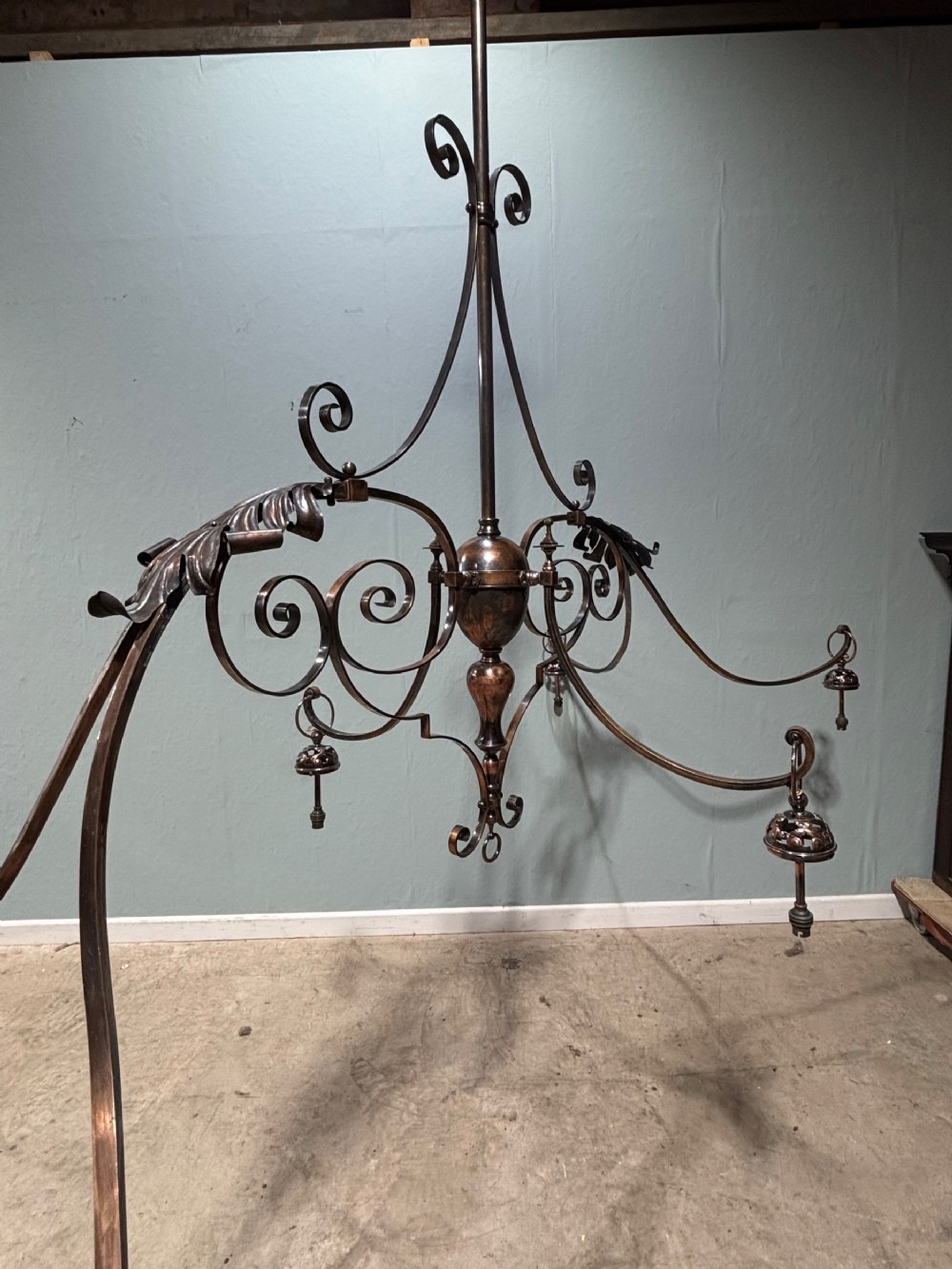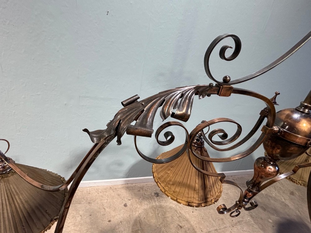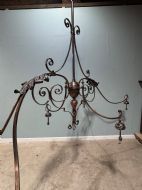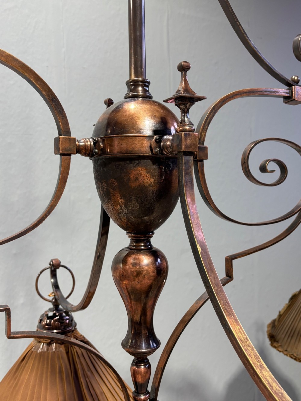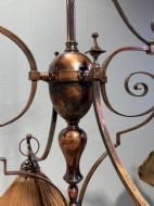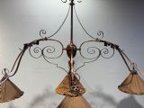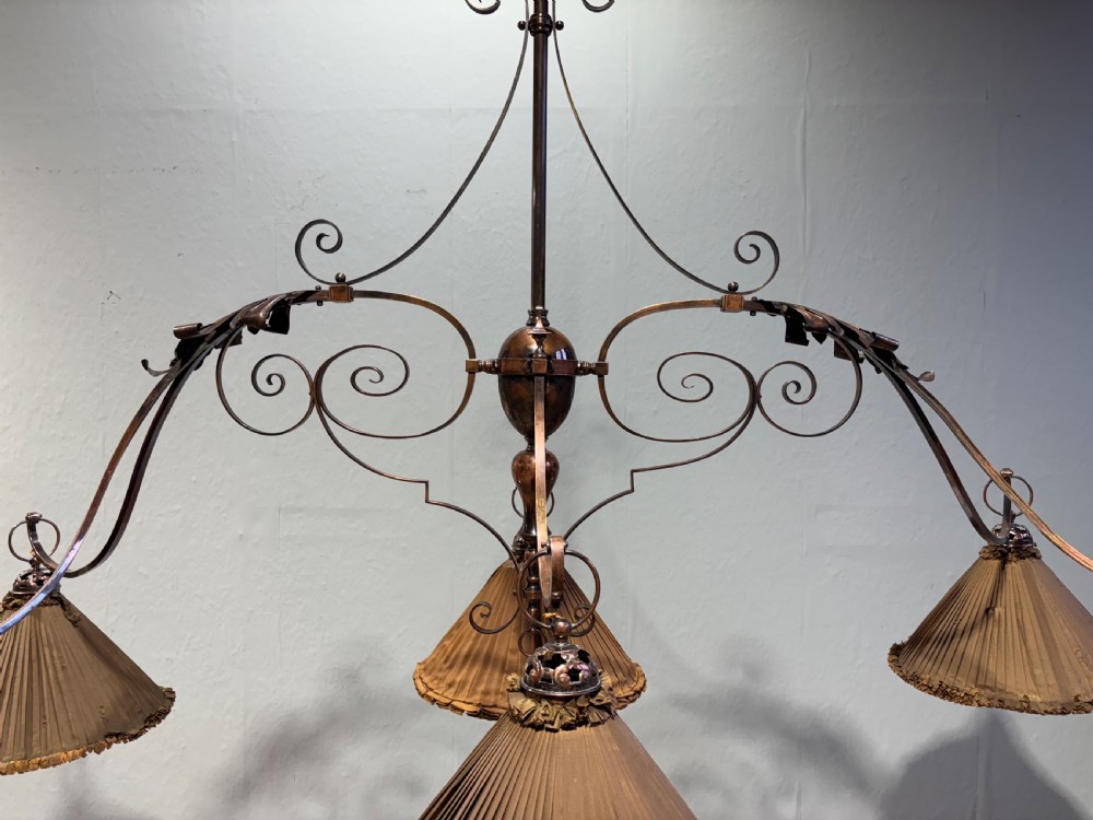 A 19th century copper & brass six branch billiard/snooker light, the shades are for display purposes only.