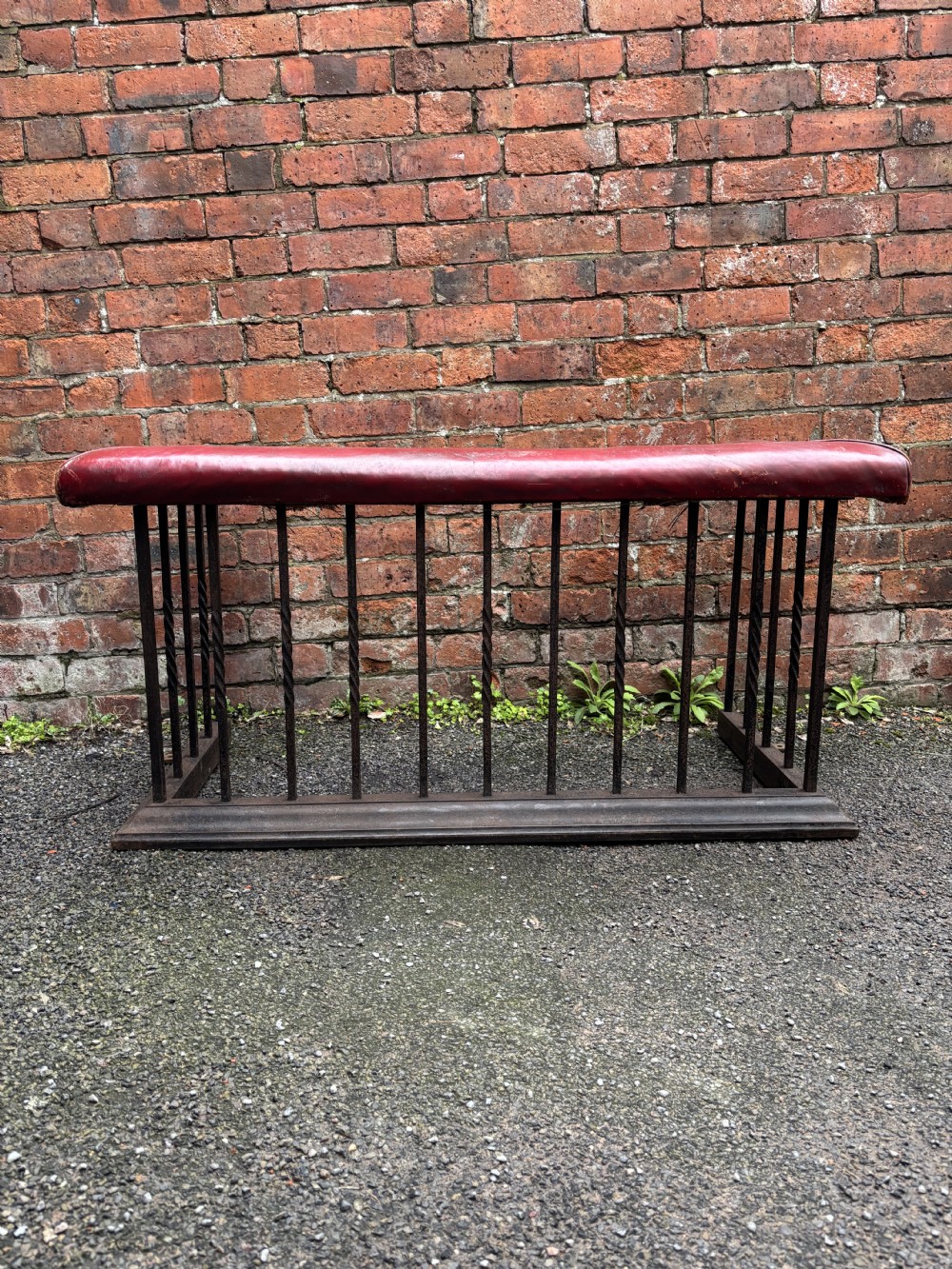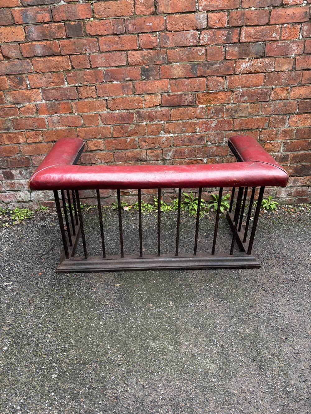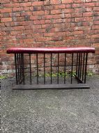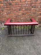 A heavy quality steel 19th century club fender with a lovely country house red leather upholstered seat.