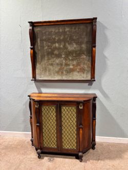 The architectural breakfront top has four fielded panelled doors, the two central doors opening to reveal four red-washed pine trays, the two outer doors opening to adjustable shelves, surrounded by an exquisitely carved lower moulding, the cornice and broken pediment having dental moulding.